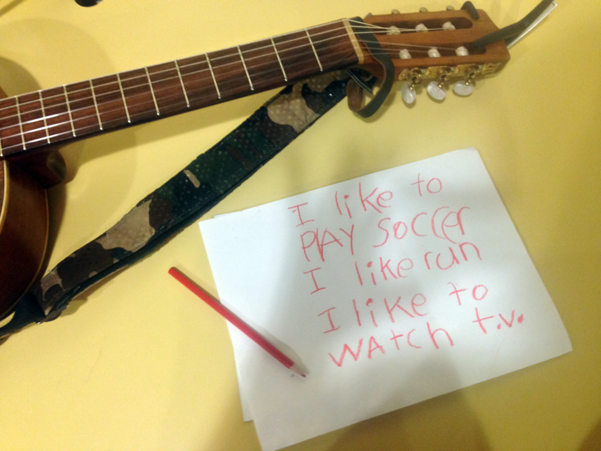 We also started a songwriting book for her because she has some other ideas. She asked if I was coming back next week. Broke my heart. What these kids go through….